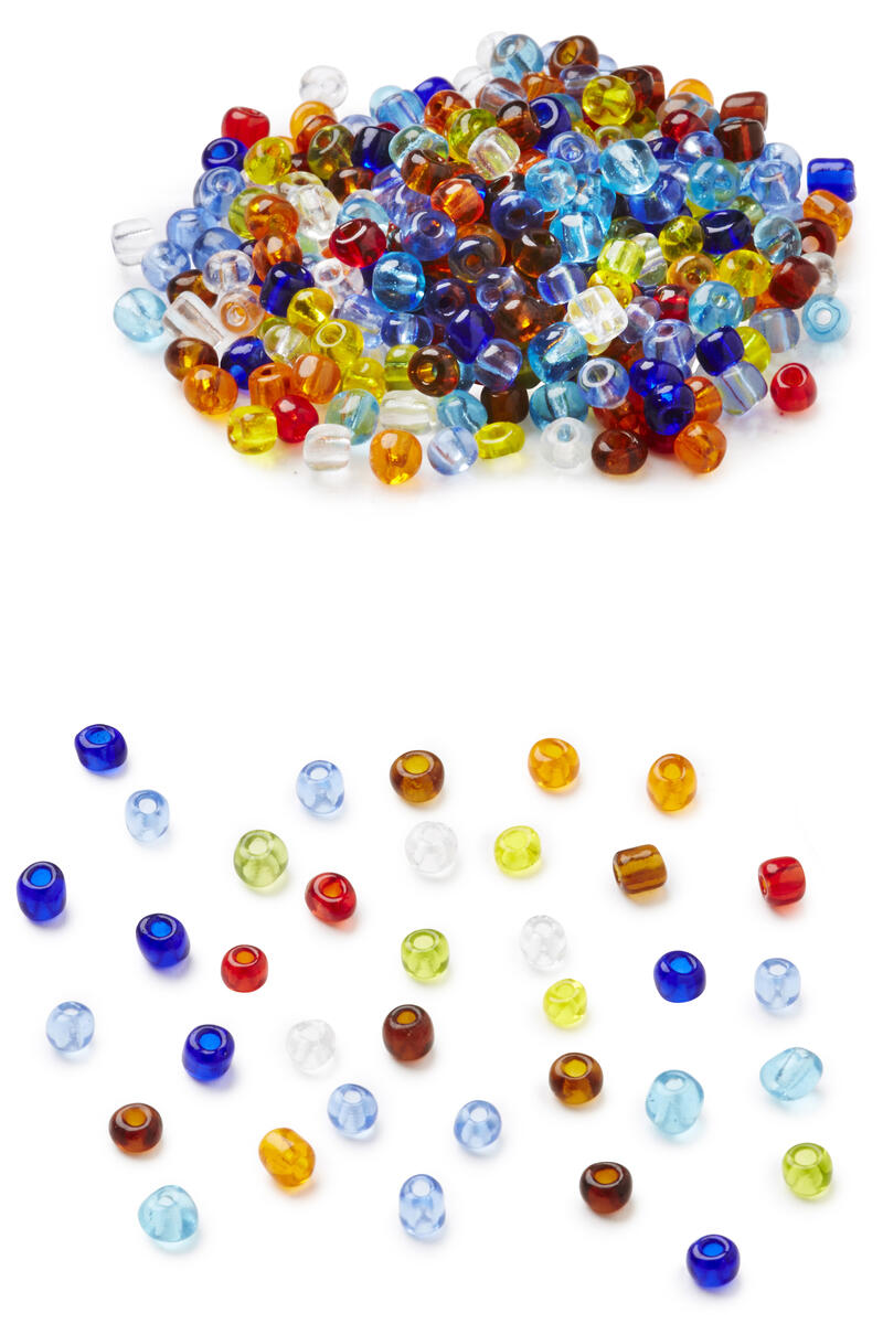1,2 kg/fp. Storpack av blanka glaspärlor i klara färger med skimrande silverinlägg i mitten. ø 3 mm, håldiameter 1 mm. 6x200 g. Färger som ingår är guld, turkos, röd, vit, grön och blå.