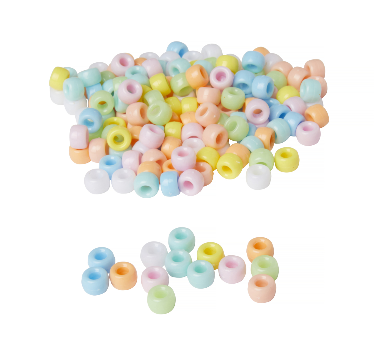 450 g/fp. Ca 5 100 pärlor/fp. Små kongopärlor i transparenta klara färger. ø 6 mm, ø hål ca 3 mm. Av polystyren. Levereras i hink med lock för praktisk förvaring. PVC-fri. Från 3 år.