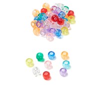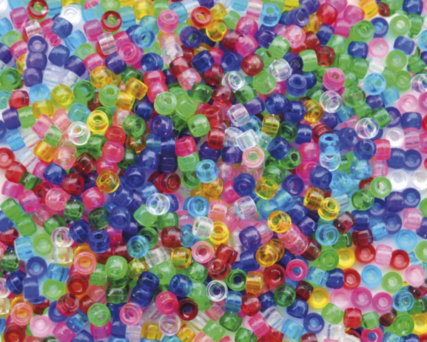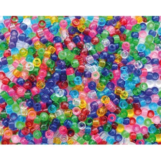 450 g/fp. Ca 5 100 pärlor/fp. Små kongopärlor i transparenta klara färger. ø 6 mm, ø hål ca 3 mm. Av polystyren. Levereras i hink med lock för praktisk förvaring. PVC-fri. Från 3 år.