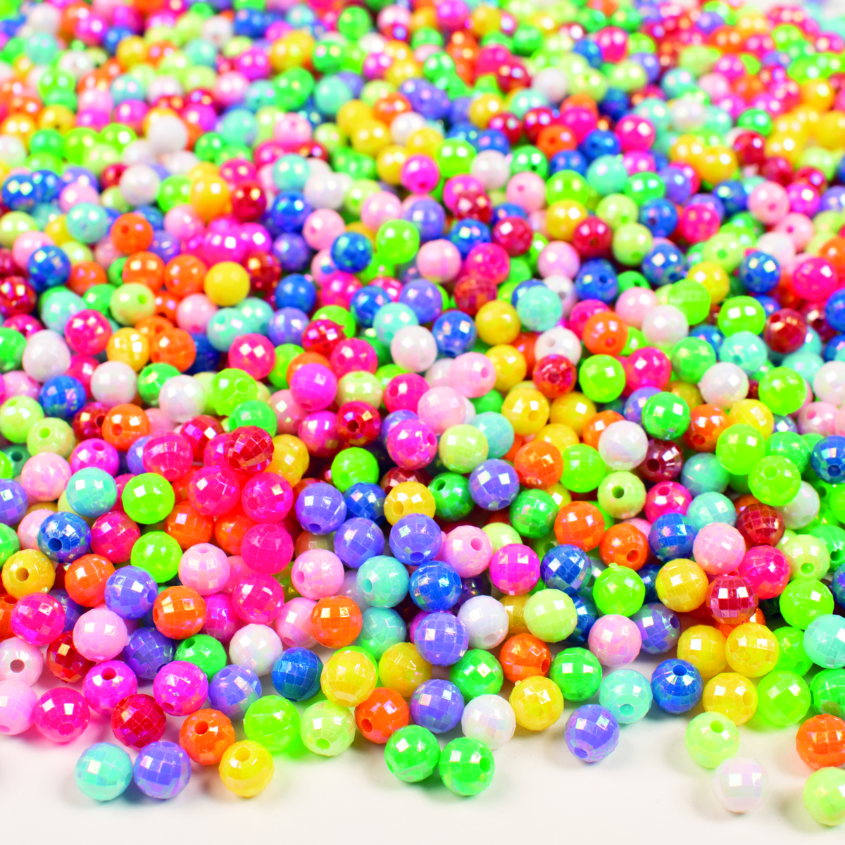 250 st/fp. Ca 120 g/fp. Facettslipade pärlor i blandade transparenta färger. Skimrar vackert likt kristaller. ø 10 mm. Håldiameter 2 mm. Av PS. Från 3 år.