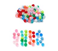 250 g/fp. Ca 550 st/fp. Facetterade och skimrande pärlor i olika färger. Pärlorna är 8 mm och 12 mm. Håldiameter 2-3 mm. Av polystyren. PVC-fri. Från 3 år.