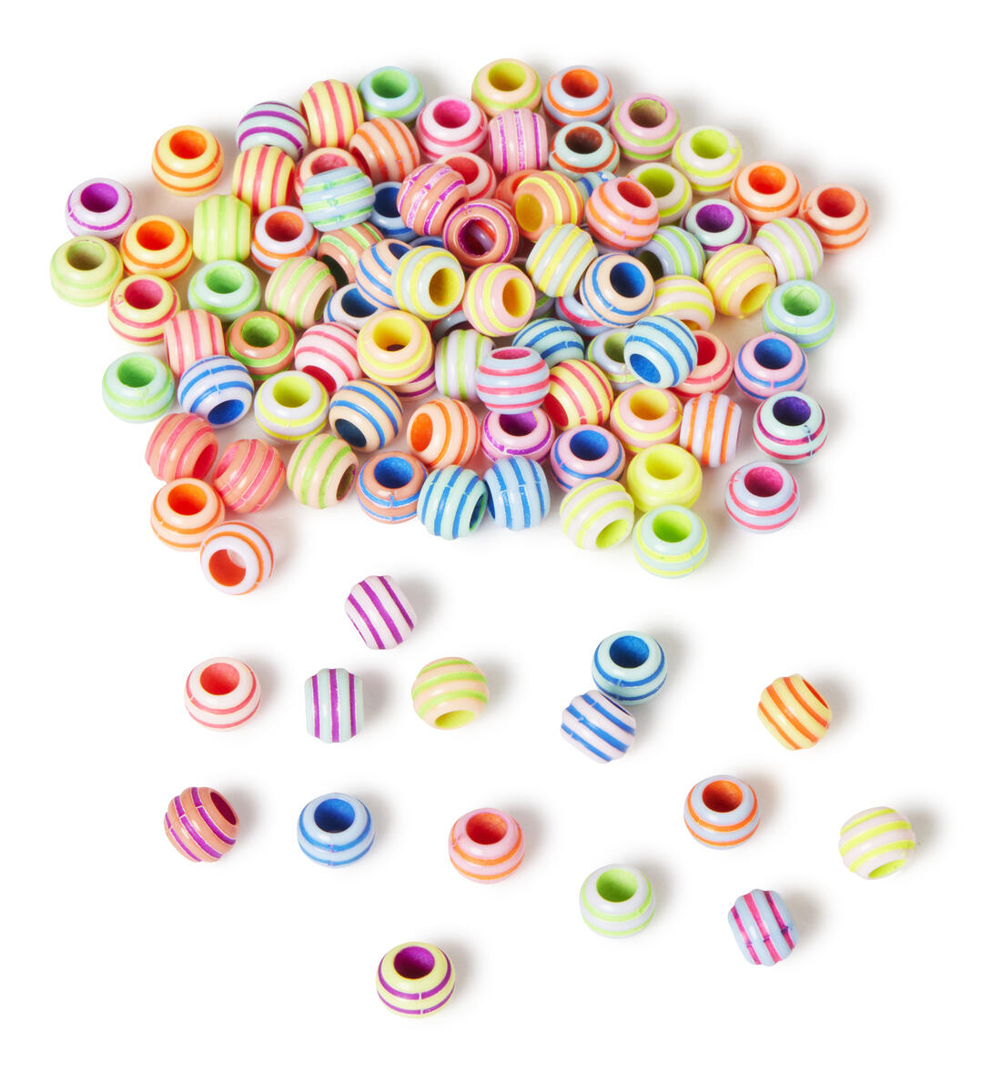 250 g/fp. Ca 550 st/fp. Facetterade och skimrande pärlor i olika färger. Pärlorna är 8 mm och 12 mm. Håldiameter 2-3 mm. Av polystyren. PVC-fri. Från 3 år.