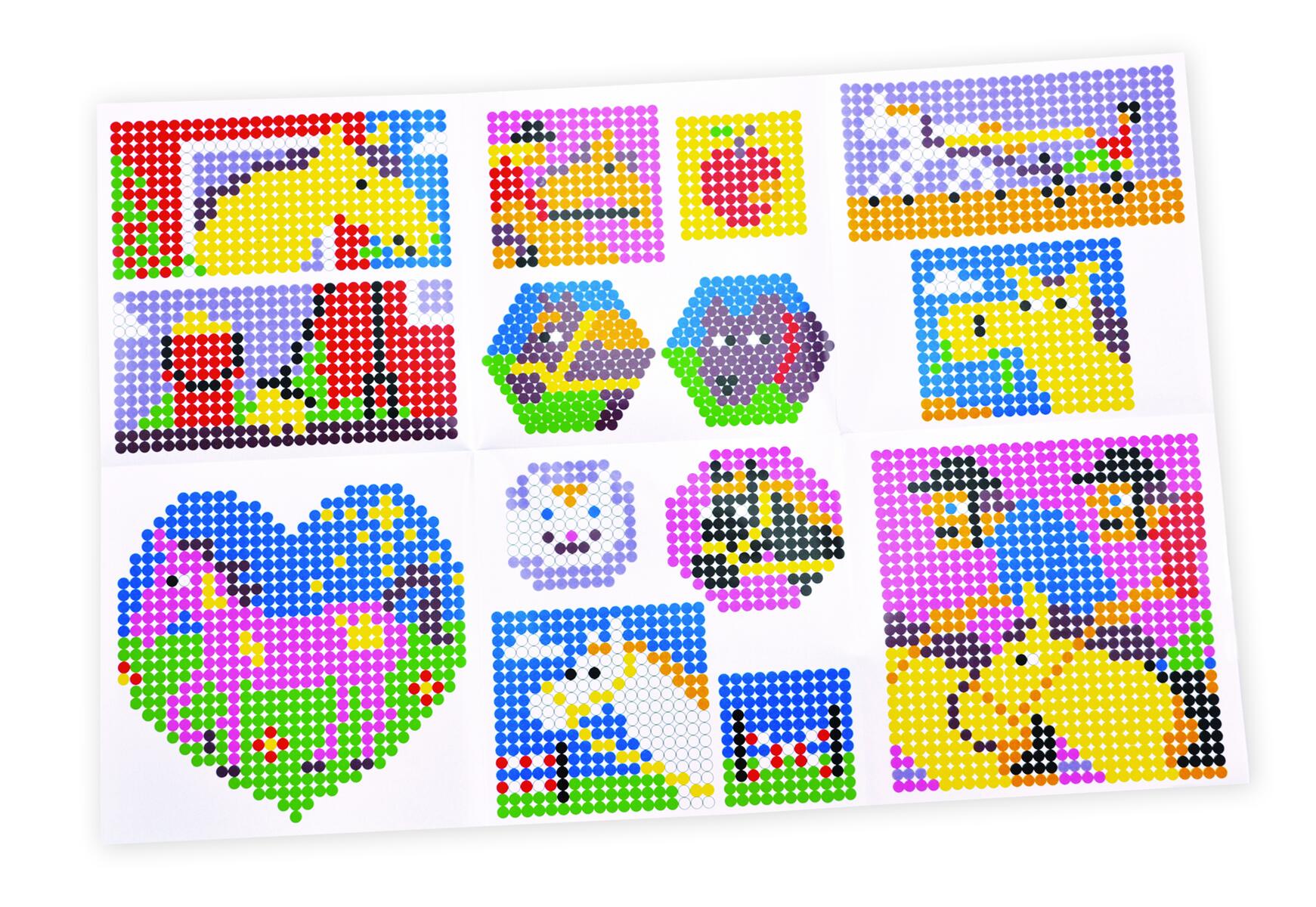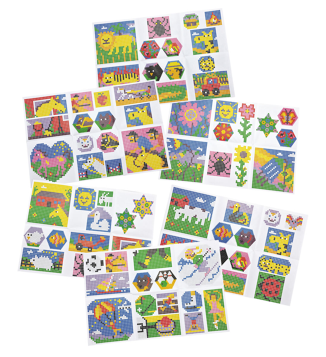 6 st/fp. Häften i färg med 67 olika motiv för inspiration till XL-pärlan. Du använder dem enkelt som mall genom att placera dem under transparenta plattor.