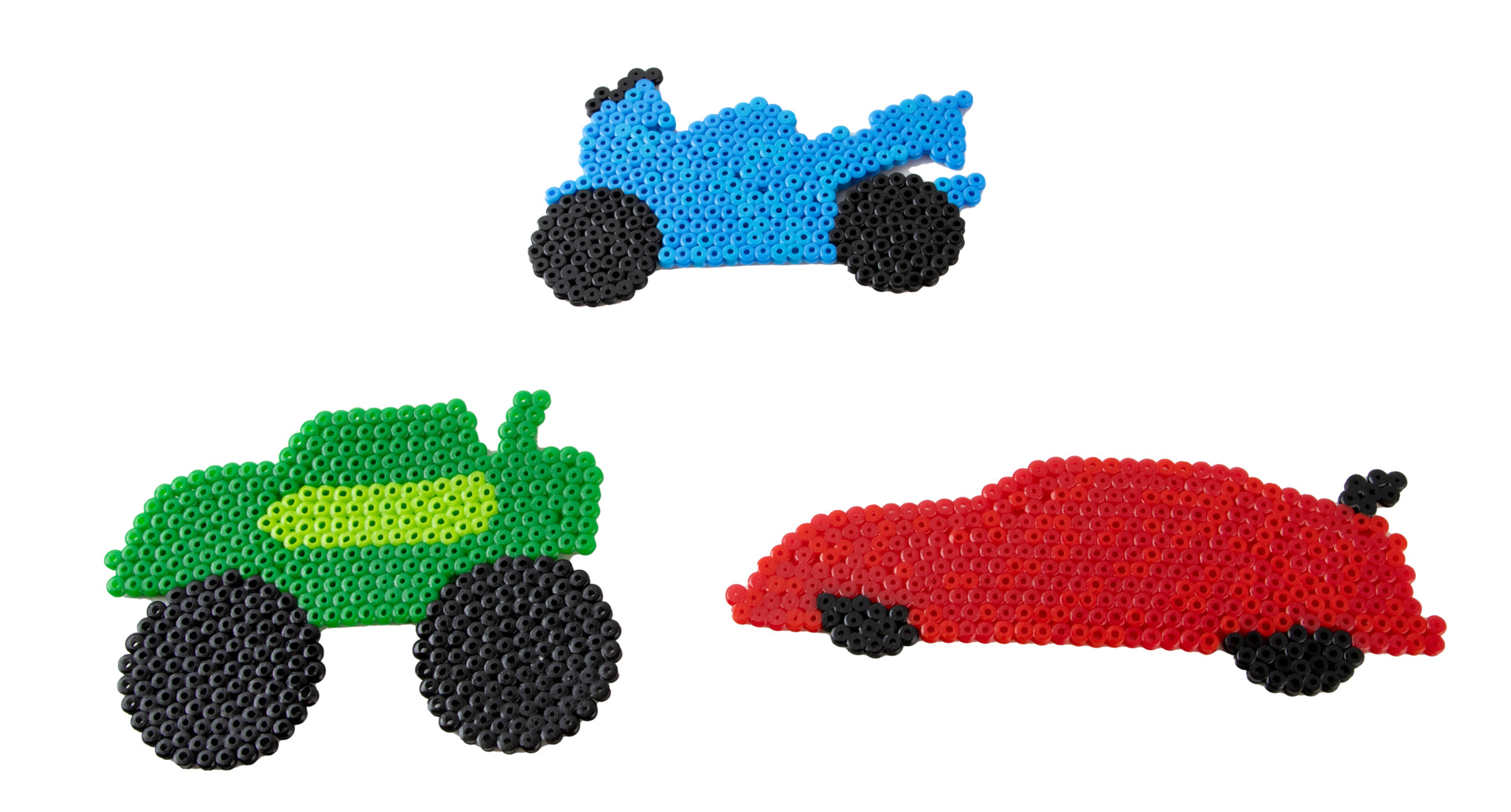 3 st/fp. Transparenta pärlplattor. Innehåller racerbil, motorcykel och monstertruck. Mått Monstertruck: L159 x H116 mm.