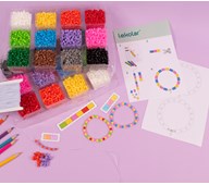 1 set/fp. Låt barnen utforska och skapa sekvenser och loopar med pärlor samtidigt som de gör ett armband. Först skapar de en egen sekvens som de färglägger. När sekvensen är bestämd pärlar de ett armband (eller halsband) genom att loopa sekvensen tills de fått ett armband som passar. Innehåller 2 tråg med totalt 8 000 rörpärlor (LDPE) i 12 olika färger, färgsorterade i fack. Elastisk snodd av latex och polyester, ø 1 mm, 50 m, 13 papperskort samt instruktion.