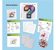 1 set/fp. Låt barnen jobba med koordinatsystem samtidigt som de pärlar. Jobba ensam eller i par genom att titta på instruktionskortet, eller rita en egen design på det blanka kortet. Utvecklar finmotorik och förståelse för koordinater. Innehåller 2 tråg med totalt 8 000 rörpärlor (LDPE) i 12 olika färger, färgsorterade i fack. 5 pärlplattor (PS) 15x15 cm, 2 strykpapper, 10 kodkort, 10 facitkort, 10 koordinatkort samt instruktion.