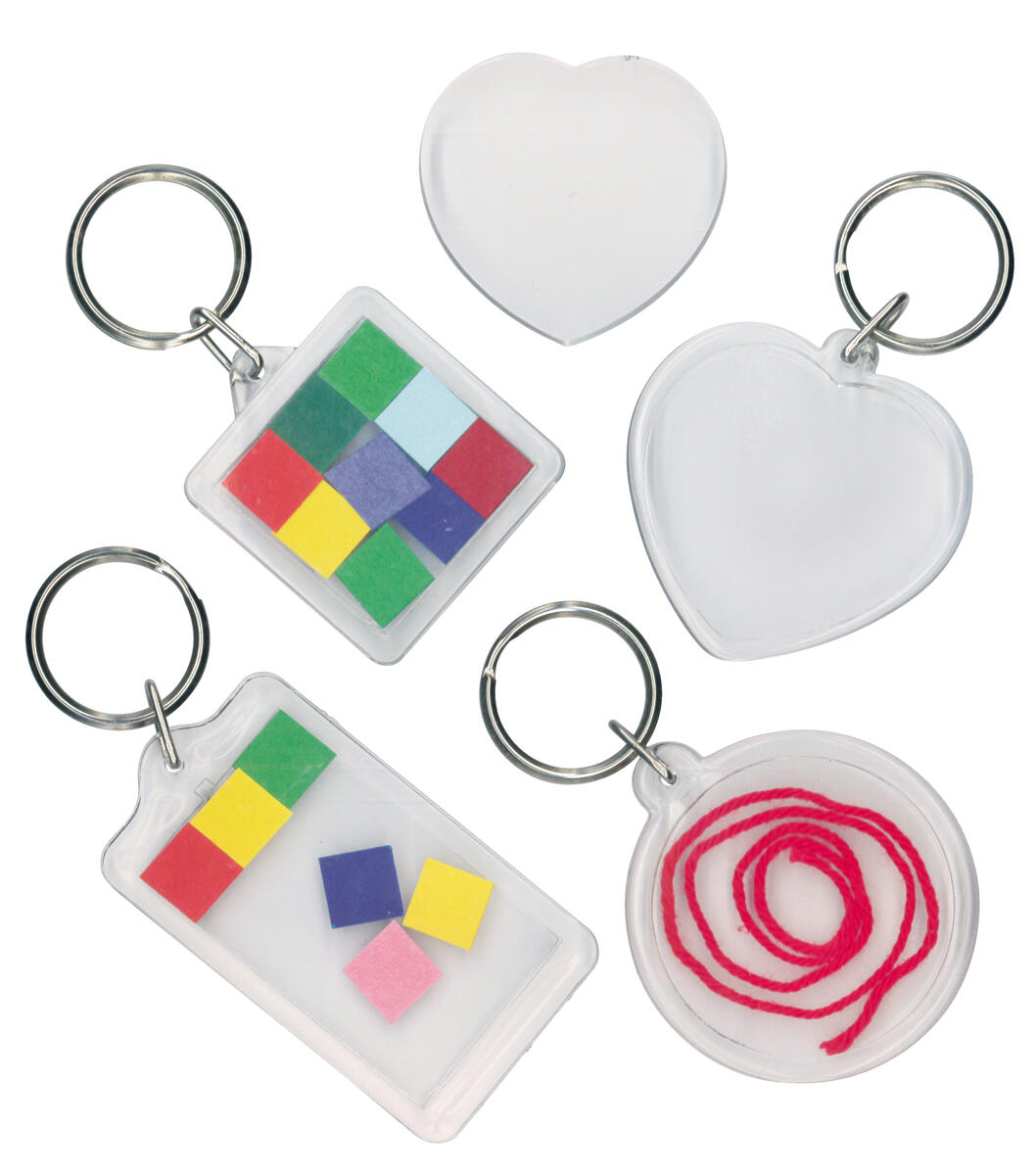24 st/fp. 6 stycken av varje i 4 olika modeller: rund 4,8 cm, hjärta bredd 4,8 cm, fyrkantig 4x4 cm och 6x4 cm. Öppningsbara och transparenta utan dekor. Av akrylplast.