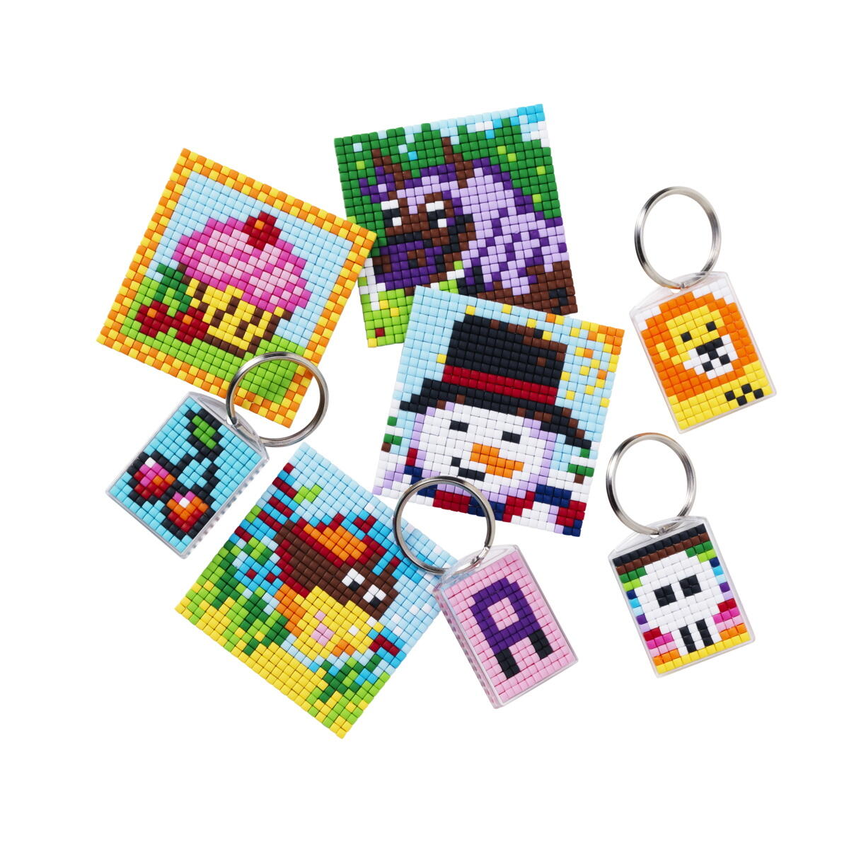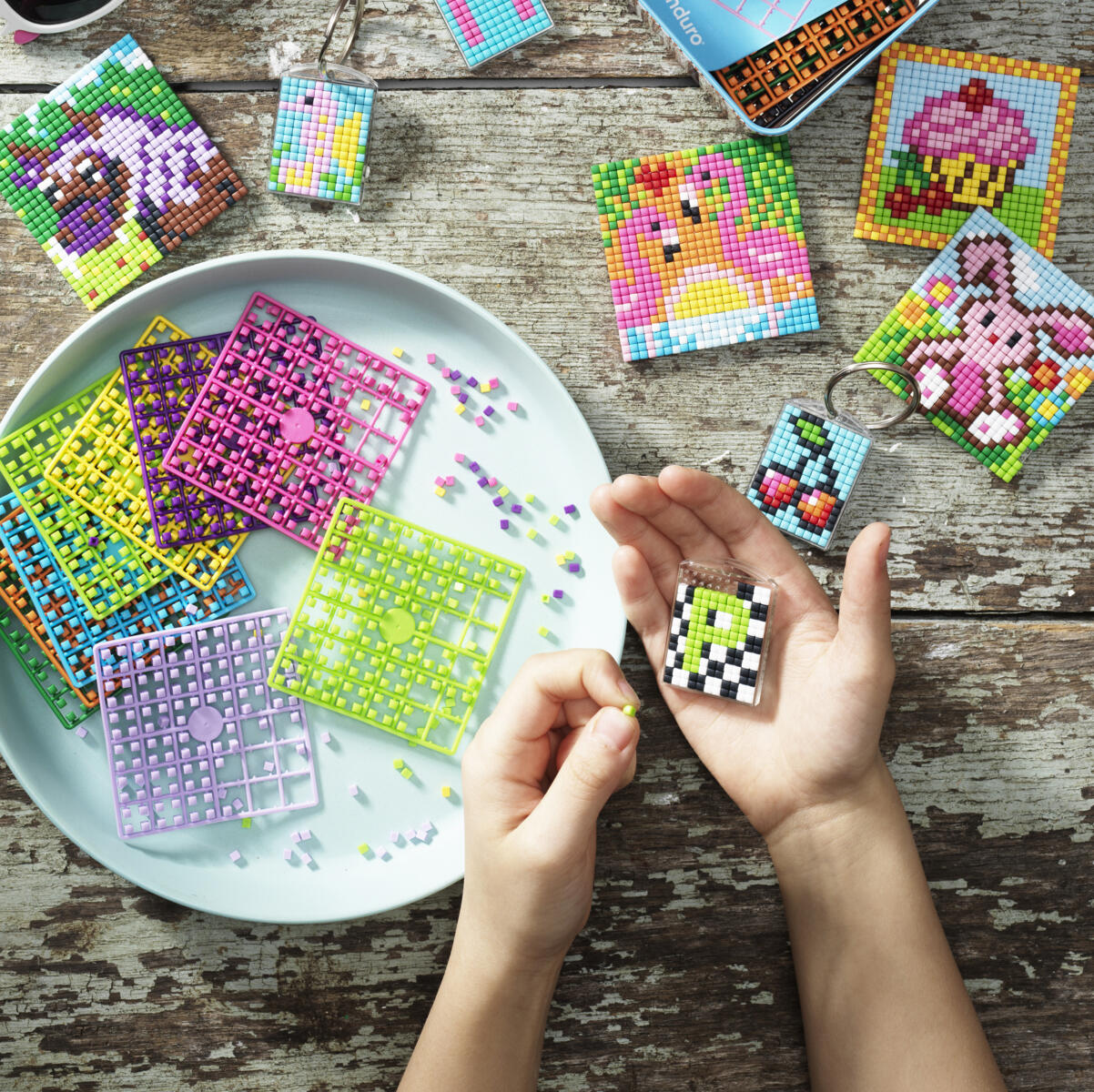 144 st/fp. Pixelpärlorna är till >94 % gjorda av biobaserad plast, <6 % av plasten kommer från fossil råvara. Mått: pärla 2x2 mm, hela plattan 6x6 cm. Från 6 år.