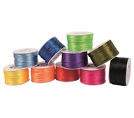 10x50 m/fp. Satinsnöre i fin blank kvalitet. ø 2 mm. Innehåller 10 pastellfärger. 1 rulle/färg. 50 m/rulle.