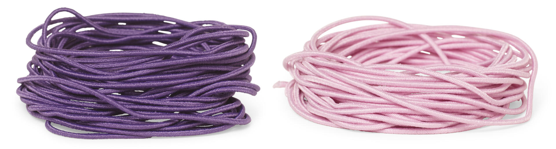 6x25 m. Elastisk resårsnodd. Rund omspunnen kärna ø 1 mm. Av polyester och latex. PVC-fri.