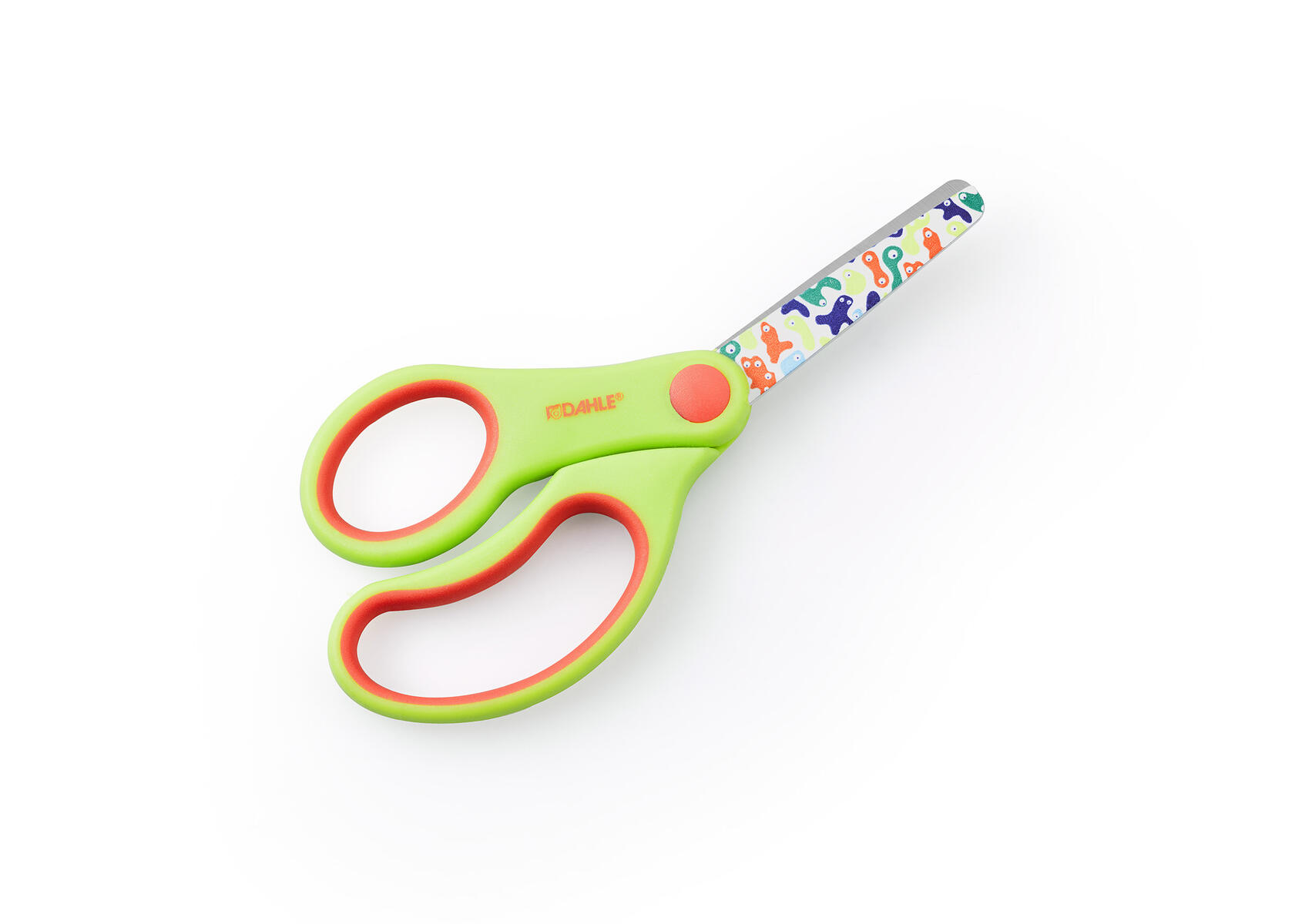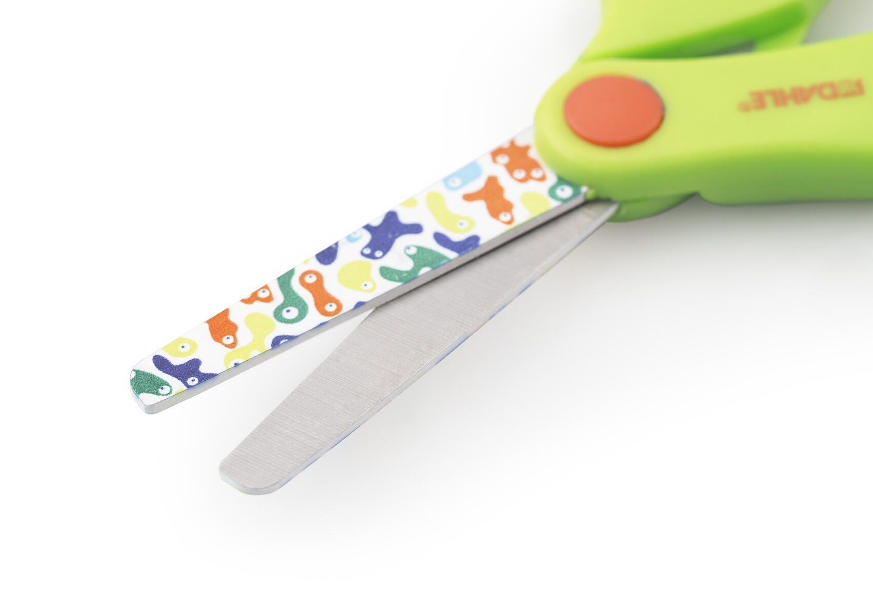 Fina färger och tryckt bilmönster på bladet. Rundad spets minskar risken för stick- och skärsår. Grepp med mjuk insida, utformat för enkel och skön användning. Hel längd 13 cm. Bladlängd 6 cm. Blad av rostfritt specialhärdat stål.