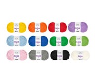 10 st x 50 g/set. Ett paket med 10 nystan i olika färger. 50 g/nystan. Ingår gul, orange, röd, ljusblå, blå, ljusgrön, grön, rosa, svart och vit. 100 % akryl. Stickor 8 mm. Masktäthet 12 m = 10 cm. Tvättråd: 40 ºC. Är OEKO-TEX®-certifierad, klass I (Standard 100). PVC-fri.