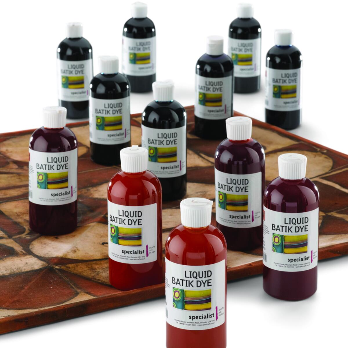 100 ml/flaska. Vattenbaserad batikfärg. Enkel att använda med vanligt salt .Bruksanvisning medföljer. Färgerna kan blandas till nya nyanser. Kan användas på bomull, linne, annan cellulosabaserad textil och silke. 100 ml färg och 200 ml fixering räcker till full infärgning av ca 700 g torrt, vitt tyg. Färgerna är tvätt- och ljusäkta.