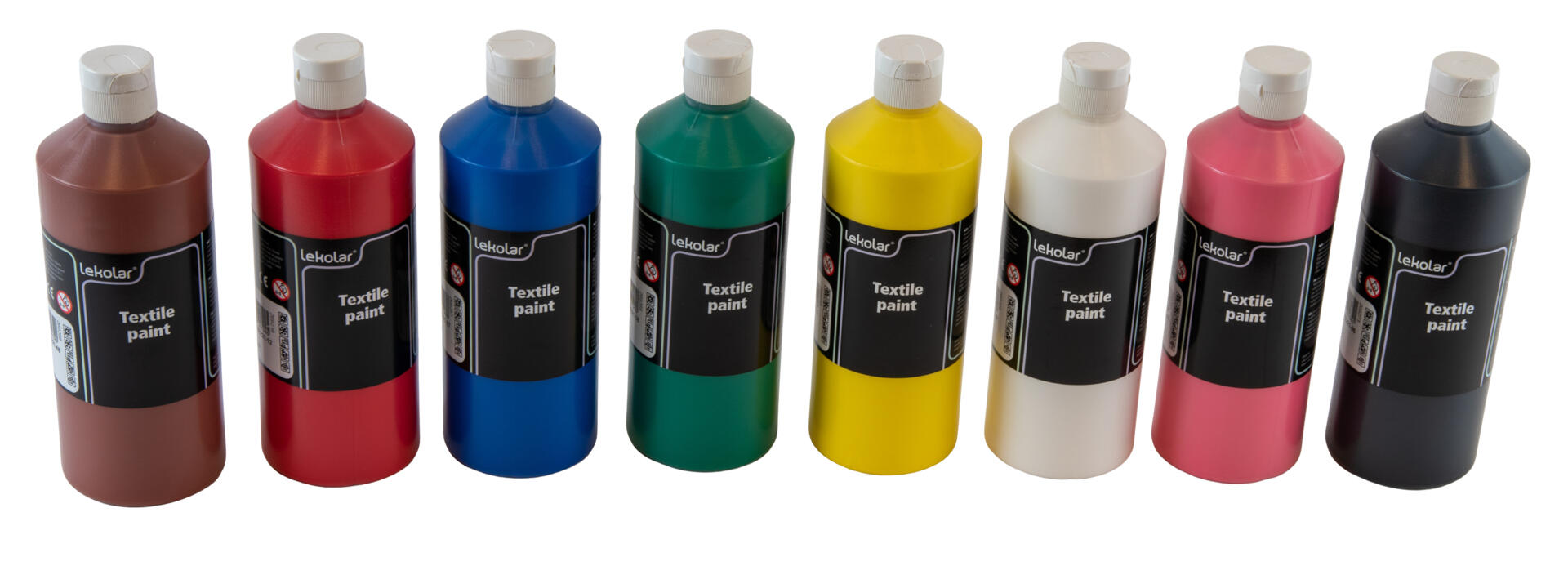 8x500 ml. Textilfärg för målning och tryck. Passar bäst till ljusa, cellulosabaserade tyger som bomull, lin viscos m.m. Mörka textiler grundas med täckvit textilfärg 119390. Fixeras med strykjärn på 50-60 °C i fem minuter efter torkning. Kan tvättas i upp till 40 °C. Färgen kan ge upphov till fläckar även utan fixering, skydda därför alltid kläder och ömtåliga ytor vid användande. Innehåller täckvit, gul, röd, rosa, lila, ljusgrön, grön och svart. PVC-fri.