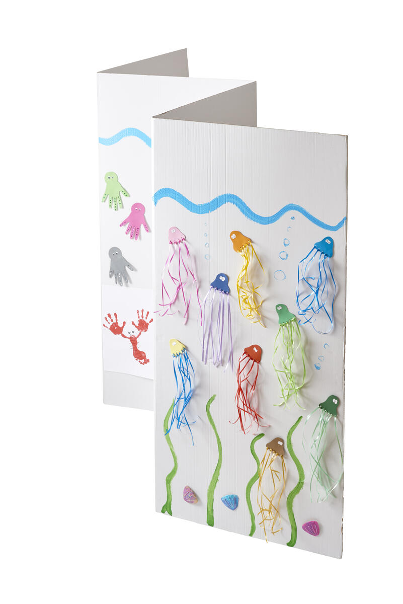 Fristående utställningsskärm av kraftig wellkartong med vit yta. Fungerar för kartnålar och pins samt avtagbar tejp. 3-delad. Skärmen behöver inte förankras. Sörj för stadig uppställning. Mått: fullt utfälld B360xH190xD1 cm, hopfälld B92xH190xD3 cm. Vikt 500 g. Kan torkas med lätt fuktad trasa.