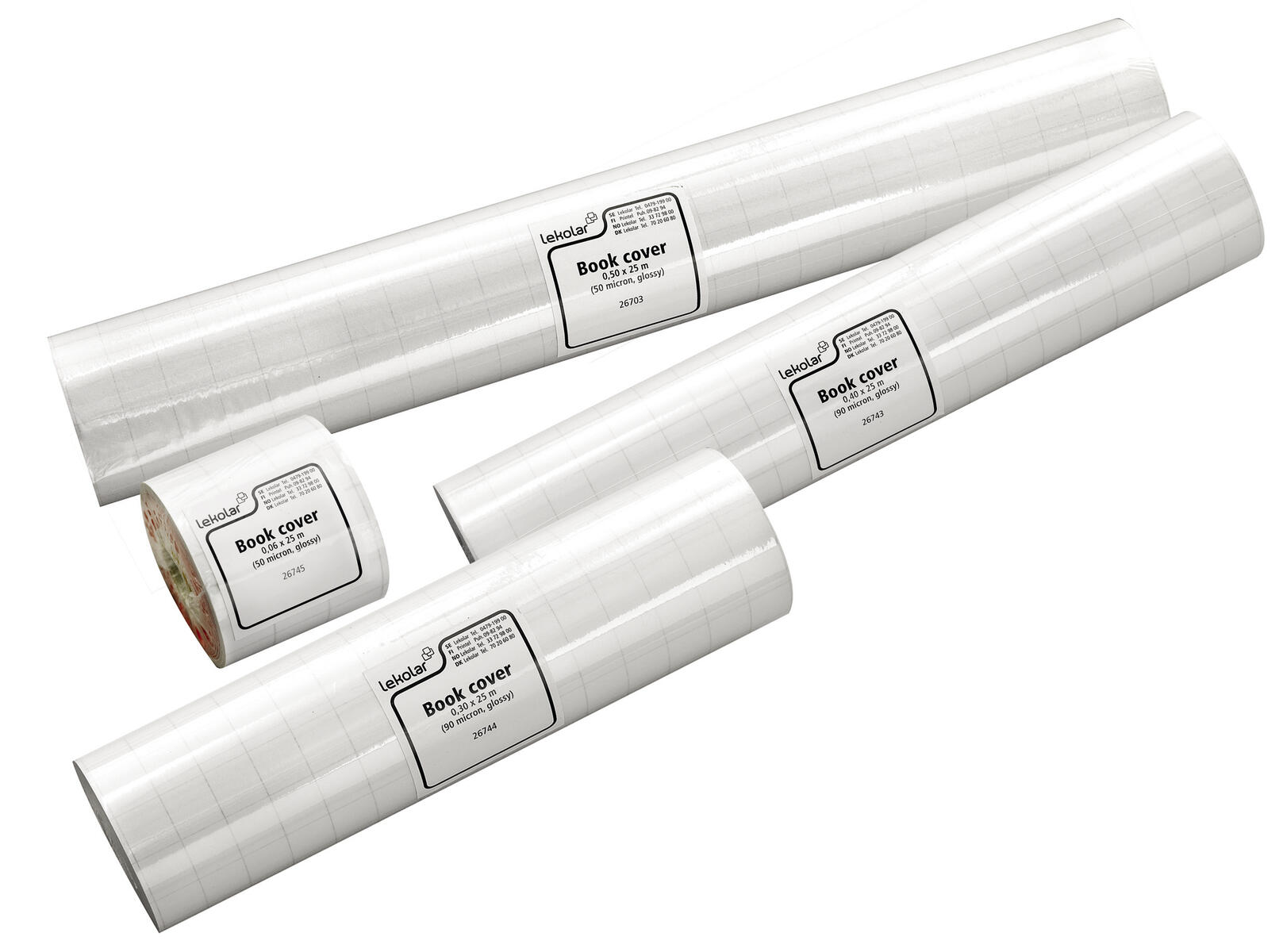 Klar Pelloplast biblioteksplast, 90 mikron. Den totala tjockleken är över 110 mikron. PVC-filmen är kadmium-, krom- och blyfri. Limmet är ett vattenförtunnat akrylbaserat lim. Limmet har en liten fördröjning i den initiala vidhäftningen, vilket möjliggör korrigeringar under mjukningen.