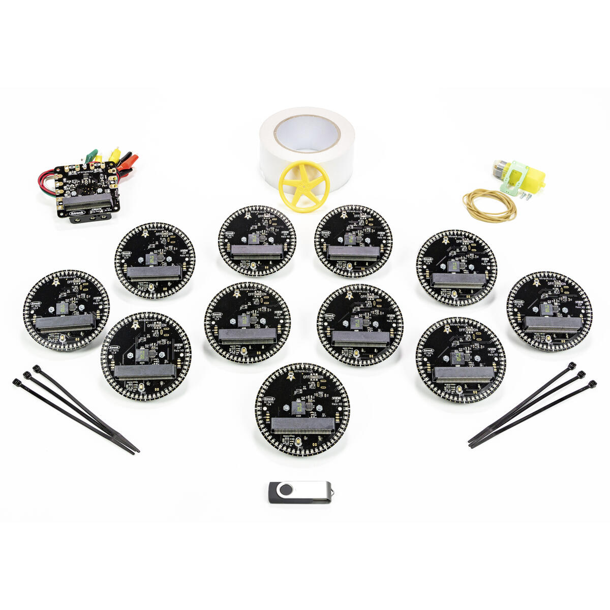 Ett set elektronik- och programmeringsdelar med läromedel. Lektionsplaneringarna innehåller instruktioner, programmeringsexempel och mycket mer. En robust lösning för hela klassrummet med material som är lämpligt att använda om och om igen. Kräver 1 micro:bit och 3 AA-batterier per robot, kartong, gummiband, tejp eller lim (säljes separat). Se PDF för ytterligare info.