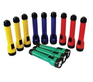 12 st/fp. Små handhållna LED-ficklampor för klassrumsexperiment. Innehåller 3 röda, 3 blå, 3 gröna och 3 gula. Mått: 16x3 cm. Drivs med 2 st AA-batterier, ingår ej.