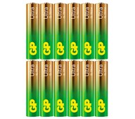 12 st/fp. GP Ultra Alkaline AAA-batteri, 24AU/LR03. Alkaliskt standardbatteri för de flesta produkter med låg till medelhög strömförbrukning som leksaker, väggklockor och ficklampor. Lång livslängd. Patenterad konstruktion för att förhindra batteriläckage. Svanenmärkt.