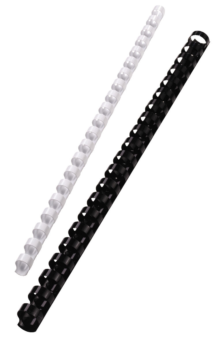 100 st/fp. Svarta. Klarar att binda in 130 st 80 g ark/spiral. Det går att öppna spiralerna och komplettera mappen med flera blad. Mappen ligger plant på bordet och är lätt att bläddra i. Passar till Multibind och CombBind.