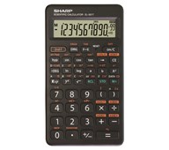 Sharp grundskoleräknare med stor 8-siffrig display. Funktioner: de fyra räknesätten, %, roten ur, teckenbyte +/-, pålägg och oberoende minne. Kombinerad solcells- och batteridrift. Batteri ingår. Automatisk avstängning. Mått: B71xH116xD17 mm.