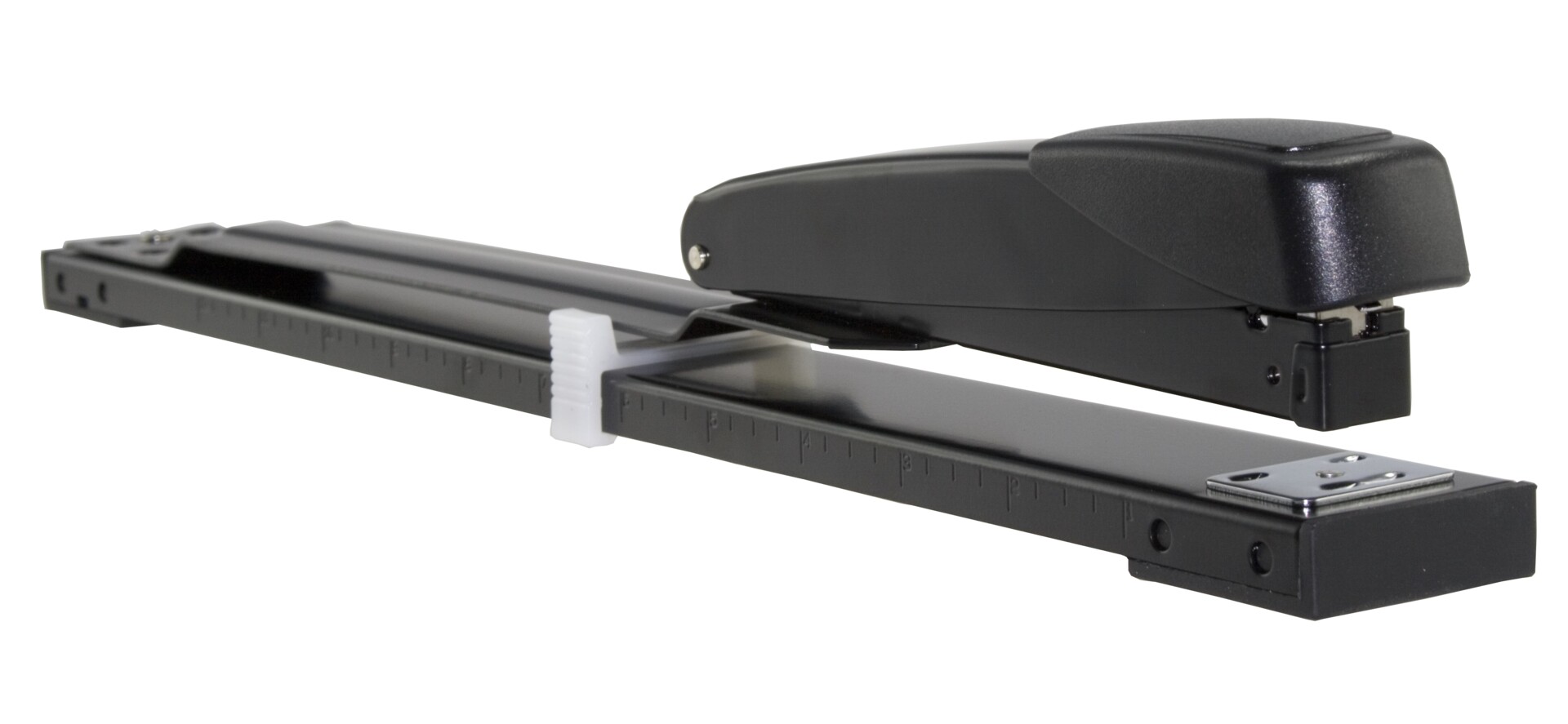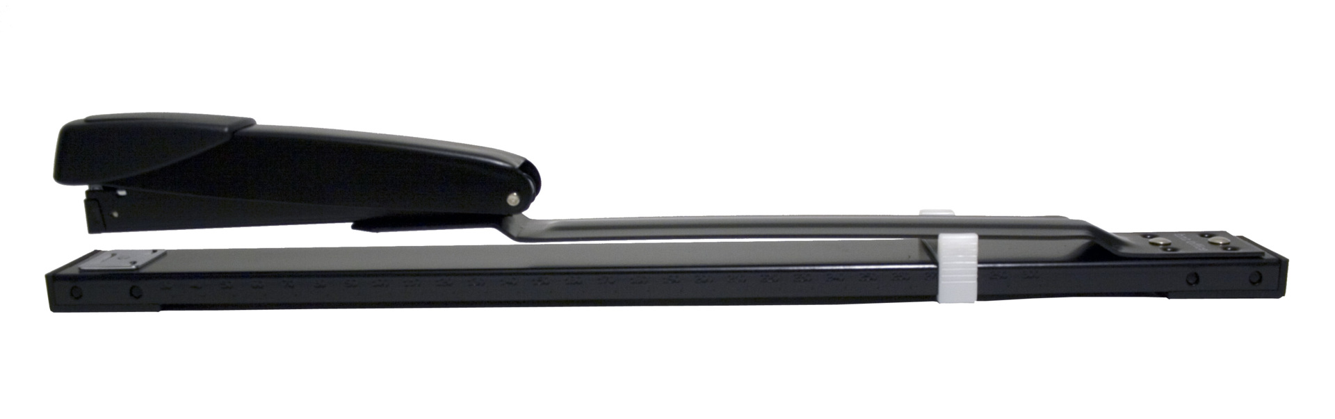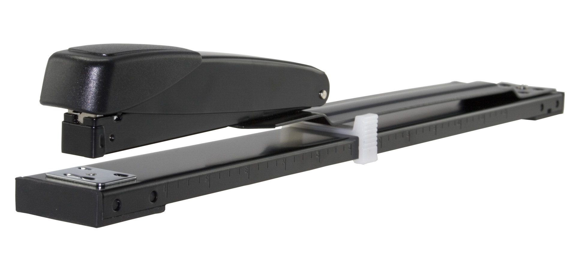 1 st/fp. Häftapparat med förlängd arm som ger ett djup på upp till 317 mm. Högsta kvalitet, konstruerad i formpressad plåt med plastdetaljer. Justerbart djup med hjälp av flyttbar djupblockerare. Tack vare en patenterad klammerbana kan både 24/6- och 26/6-klammer användas. Häftar upp till 20 ark.
