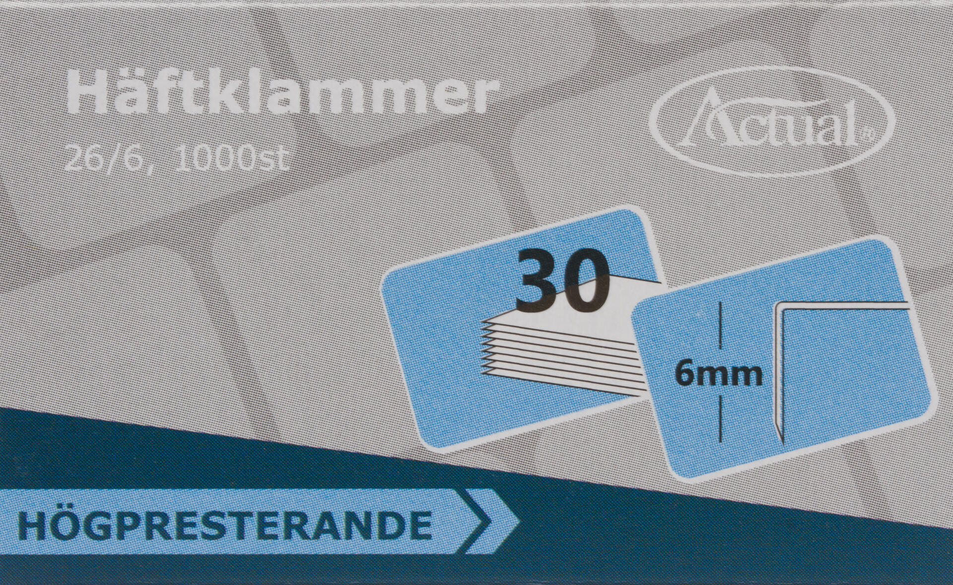 1000 st/fp. Häftklammer för häftapparat och häfttång. 26/6. Klarar upp till 30 ark.