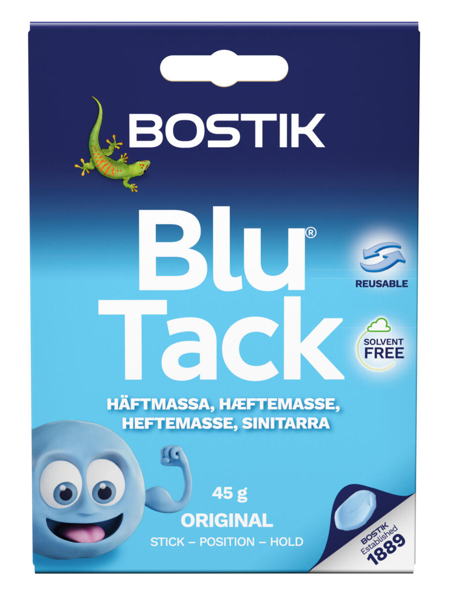 Häftmassa fäster meddelanden, affischer och andra lätta föremål på olika underlag. Doftfri. Torkar inte ut utan kan återanvändas. Innehåller inte PVC. Vattenbeständig.