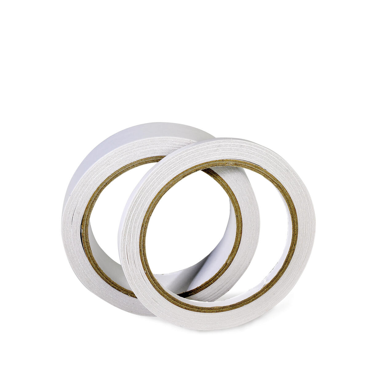 12 mm x 6 m. Dubbelhäftande tejp med transparenthållare.