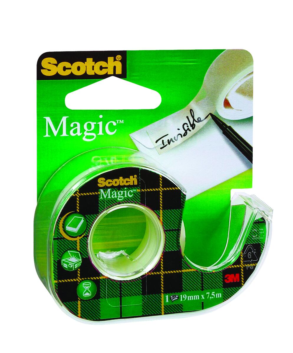 Magic™ Miljöbra val med tejphållare. Tejpen är tillverkad av över 53 % växtbaserat material, förnybar cellulosa och med vattenbaserat häftämne. Tejpen är åldersbeständig, osynlig och går att skriva på. Tejpens kärna och förpackning är av 100 % återvunnet papper och hållaren av 100 % återvunnen plast. 19 mm x 20 m.
