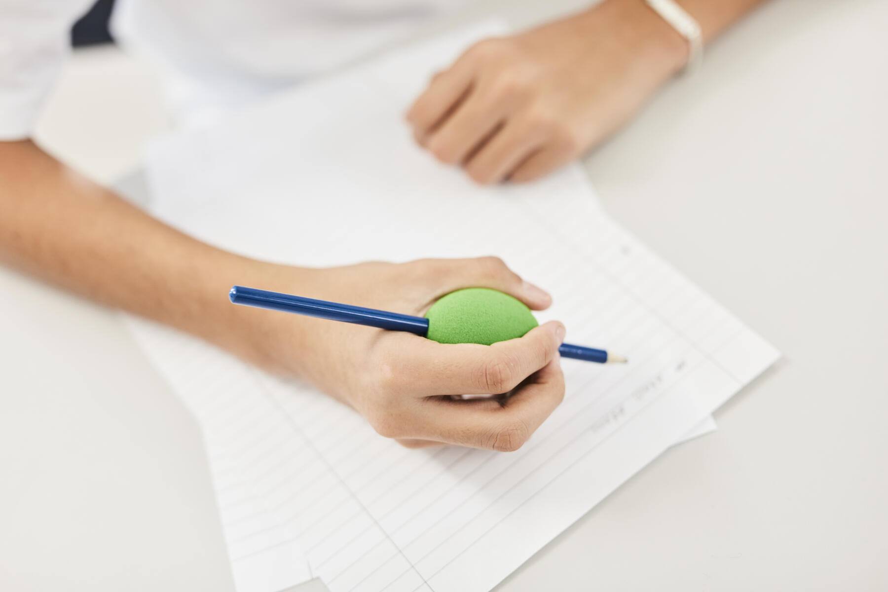 3 st/fp. Äggformade penngrepp framtagna för att utveckla de små musklerna i handen som behövs för att skriva. Färgen på penngreppet kan skifta mellan gult och orange. Mått: 47x40 mm. Vikt 6 g. Av NBR-gummi. PVC-fri.