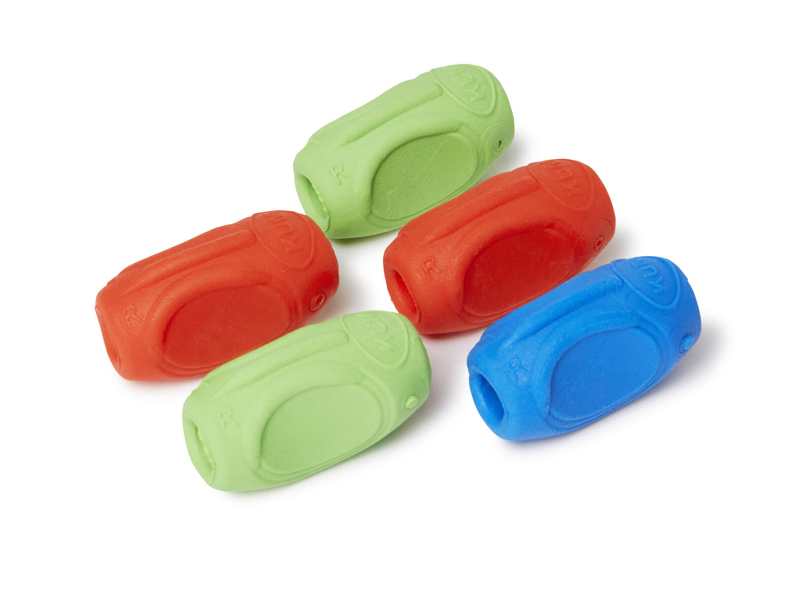 10 st/fp. Ett mindre penngrepp som hjälper till att få fingrarna på rätt plats. En liten pil visar hur man sätter i pennan. Kan användas både av höger- och vänsterhänta. Passar främst till mindre händer och fungerar på normaltjocka pennor. Färgerna varierar. Ej lämplig för barn under 3 år.