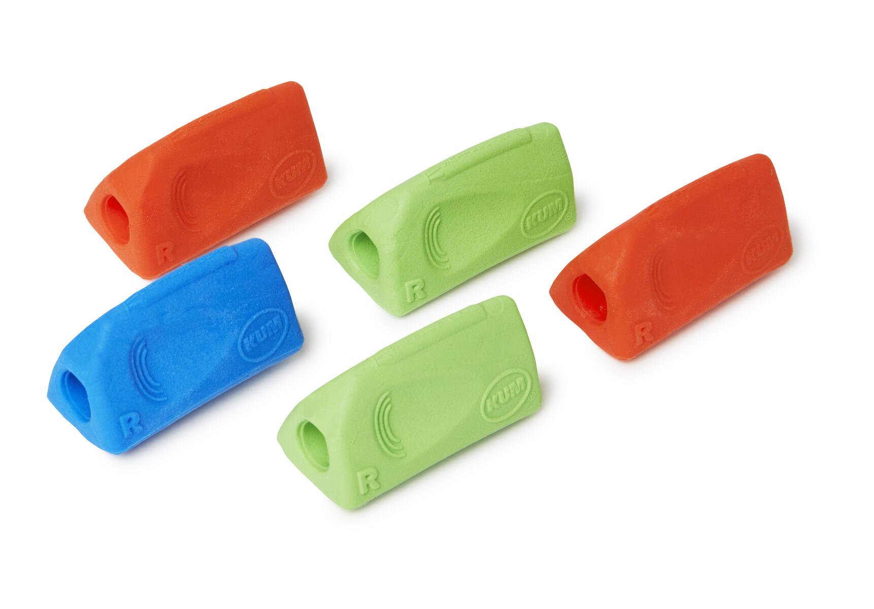 3 st/fp. Äggformade penngrepp framtagna för att utveckla de små musklerna i handen som behövs för att skriva. Färgen på penngreppet kan skifta mellan gult och orange. Mått: 47x40 mm. Vikt 6 g. Av NBR-gummi. PVC-fri.