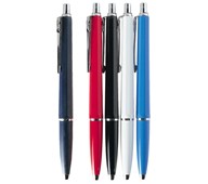 10 pennor/fp. Kulspetspenna med transparent, färgad pennkropp av återvunnen plast. Klickmekanism och clips. Spetsbredd 1 mm. Oljebaserat bläck och stålspets.