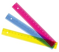 10 st/fp. Linjal med gradering i dm, cm, mm av polystyrenplast. Färg kan variera. Längd 30 cm.