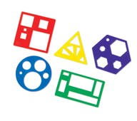 Innehåller 5 olika mallar med de geometriska formerna cirkel, triangel, rektangel, kvadrat och hexagon. Mått på rektangel L19xH11 cm. Av PP. PVC-fri. Från 4 år.
