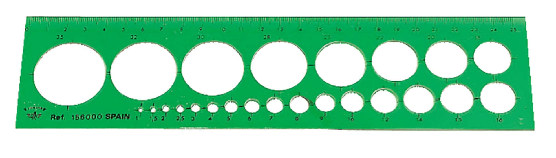 Med 24 cirklar, ø 1-35 mm. Mått: 130x270 mm. Av polystyrenplast.