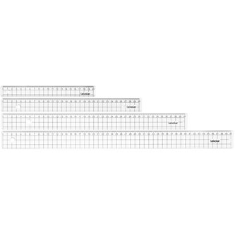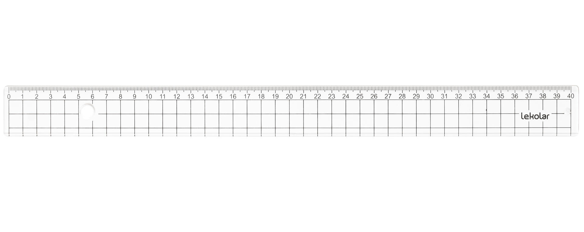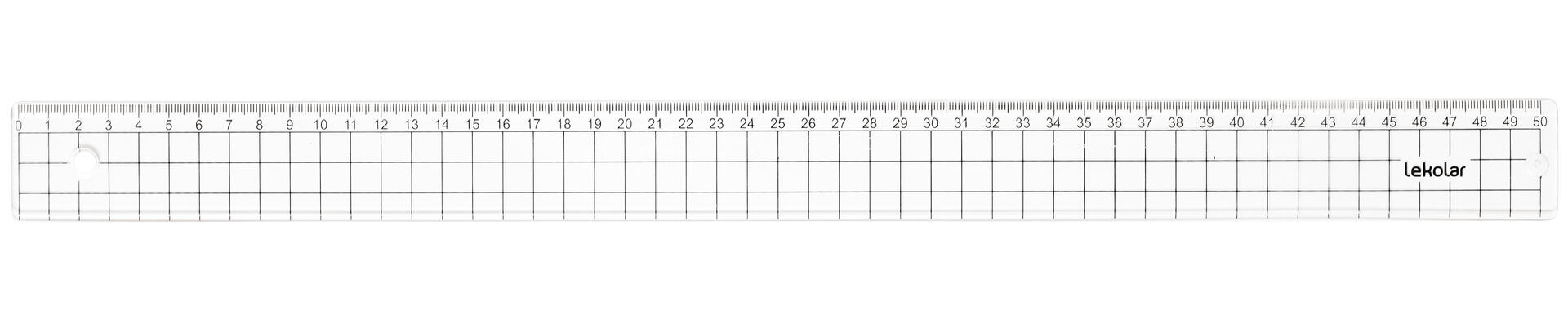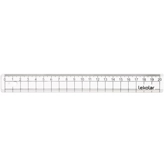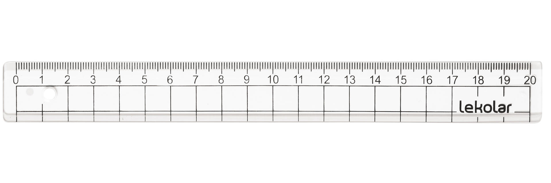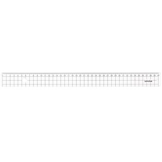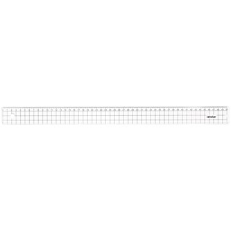 Transparent linjal med tvärgradring. Av transparent styrenplast.