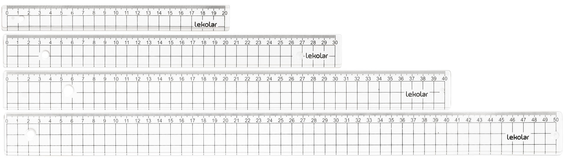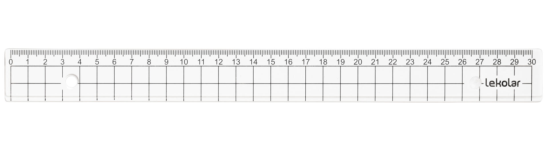10 st/fp. Linjal med gradering i dm, cm, mm av polystyrenplast. Färg kan variera. Längd 30 cm.
