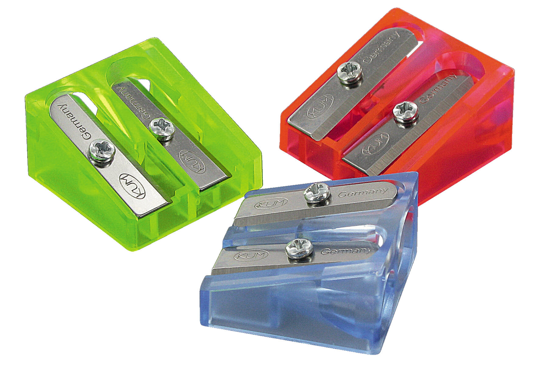 1 st/fp. KUM Color-Combi vässare med angivna hål för både blyerts- och färgpennor. Passar pennor ø 8 mm, hexagonal och rund. Rund, rymlig genomskinlig behållare. Av plast. Blandade färger. Mått: H4, ø 5 cm. Från 3 år.