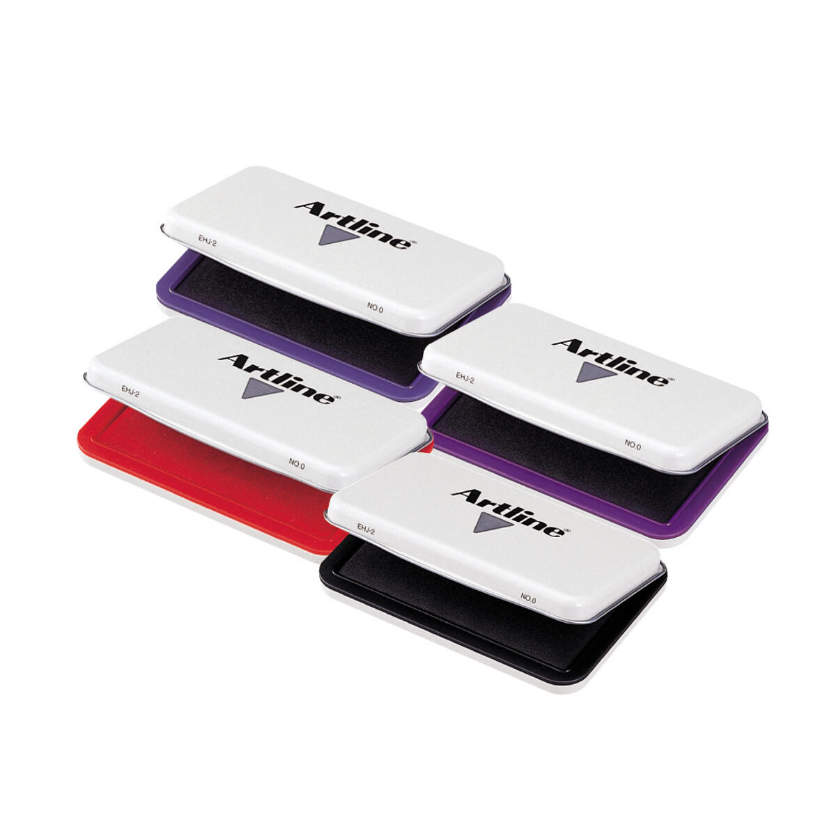 En stor stämpellåda som innehåller stämpelfärgerna blå, orange, grön, lila, gul och röd i måtten 5x5 cm. Svart stämpeldyna i måtten 16x10 cm. För bästa effekt spraya dynorna lätt med vatten innan användandet så bläcket hålls fuktigt. Avtvättningsbar färg. Från 3 år.