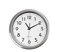 Rund modell med säkerhetsglas, sekundvisare och tydliga svarta siffror. Silvrig ram. Quartzur som drivs med 1 st AA-batteri. Klockan är helt ljudlös. OBS! Batteri medföljer ej.