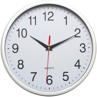 Rund modell med säkerhetsglas, sekundvisare och tydliga svarta siffror. Silvrig ram. Quartzur som drivs med 1 st AA-batteri. Klockan är helt ljudlös. OBS! Batteri medföljer ej.