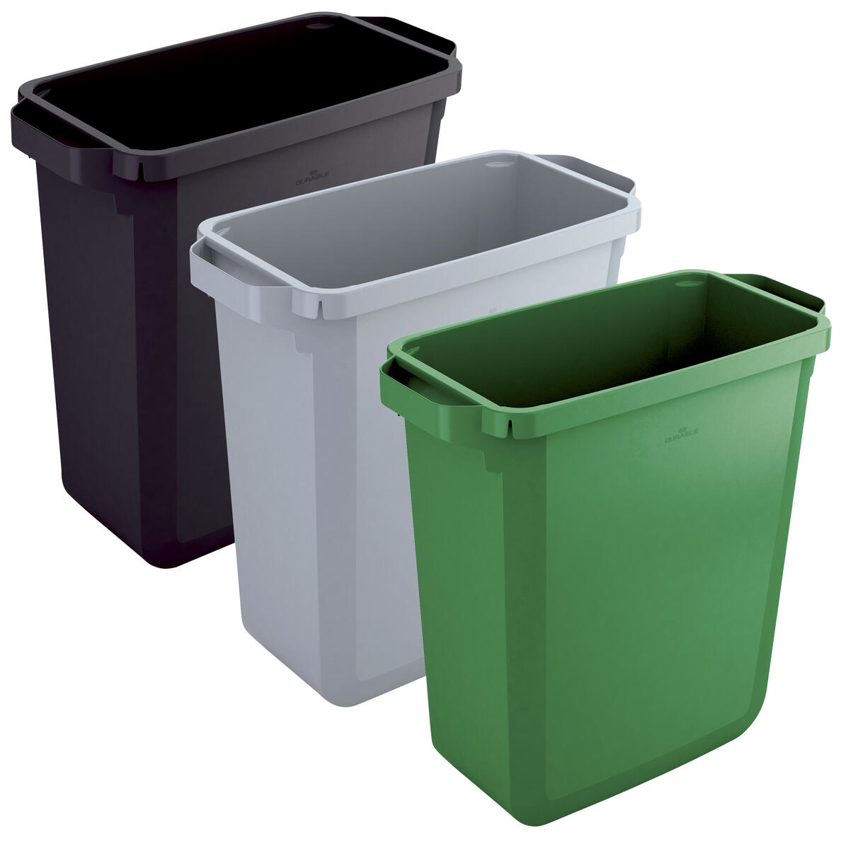 Stor, rektangulär tunna för avfall och sortering. Stabil ovankant att lyfta i och vika sopsäck över. Handtag upptill. Kan staplas. Tål temperaturer ner till -20 °C. Välj bland olika färger. Komplettera med 29329/lock i olika utföranden och 29332/klisterdekaler för olika typer av sortering. Mått: B59xD28xH60 cm. Rymmer 60 l.