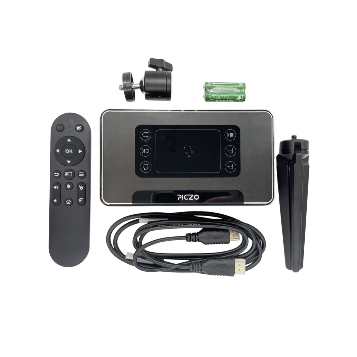 Paket för projicering med en kompakt, ljusstark kvalitetsprojektor som projicerar både bild och film med HD-upplösning på vilken yta som helst, både inomhus och utomhus. Styrs via fjärrkontroll eller direkt på projektorn, stöd för Wi-Fi och Bluetooth och tillgång till tusentals appar. Enheten har även en USB-ingång som gör det möjligt att ansluta USB-minnen och externa hårddiskar för snabb filhantering. Har plats för ett micro SD-kort och HDMI-ingång. Inbyggt batteri med två timmars batteritid för optimal mobilitet. Innehåller: projektor, tripodstativ, strömkablar, en fjärrkontroll, en klämma för att fästa projektorn på de mest otänkbara platser, samt en vattenavvisande väska för att förvara och skydda Piczo-projektorn med tillbehör.