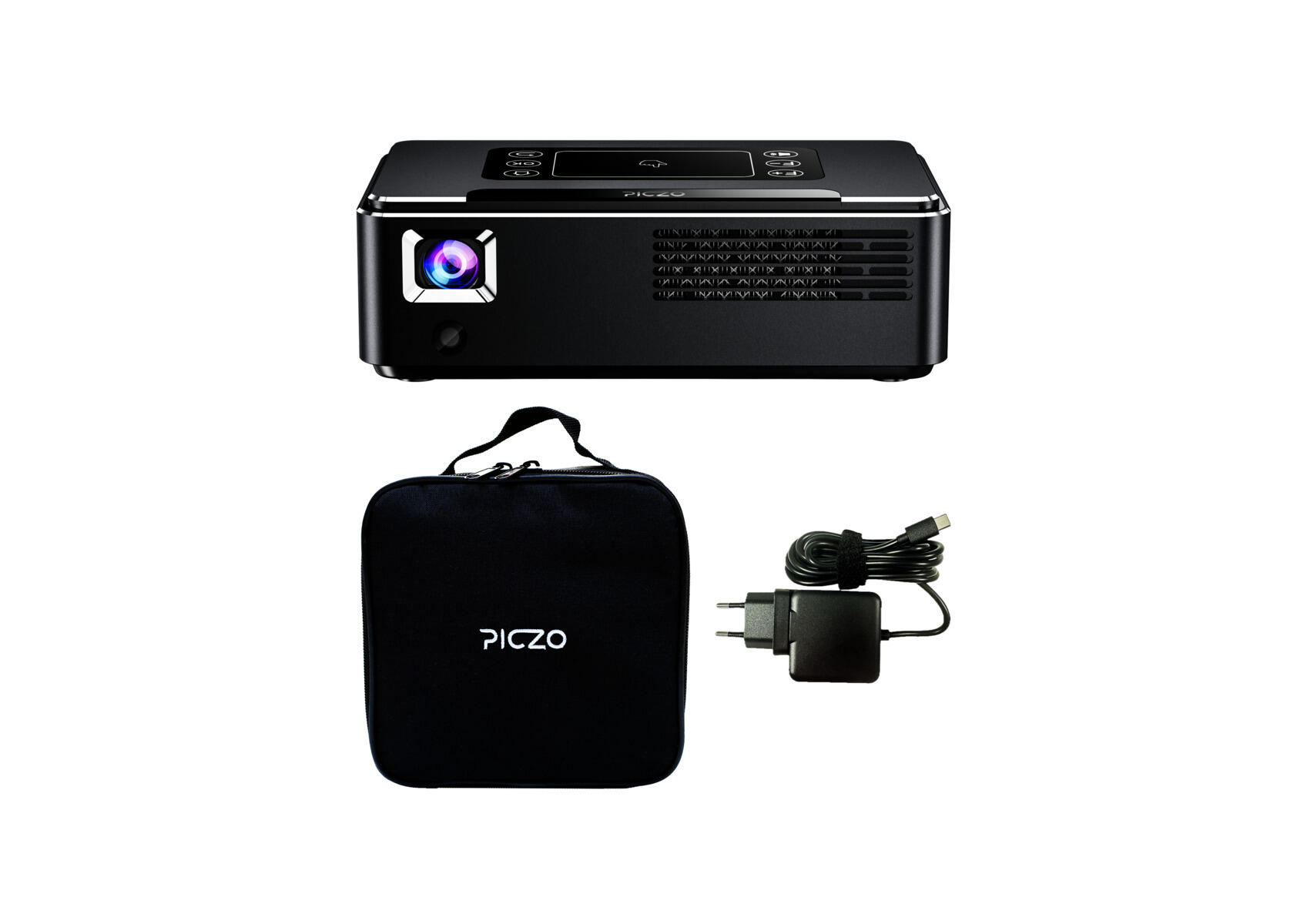Paket med en vattentät väska och en kompakt, ljusstark kvalitetsprojektor som projicerar både bild och film i HD-upplösning på vilken yta som helst, både inomhus och utomhus. Styrs via fjärrkontroll eller direkt på projektorn, stöd för Wi-Fi och Bluetooth och tillgång till tusentals appar. Enheten har även en USB-ingång som gör det möjligt att ansluta USB-minnen och externa hårddiskar för snabb filhantering. Har plats för ett micro SD-kort och HDMI-ingång. Inbyggt batteri med två timmars batteritid. Innehåller: projektor, tripodstativ, strömkablar, en fjärrkontroll och en vattenavvisande väska för att förvara och skydda Piczo-projektorn med tillbehör.