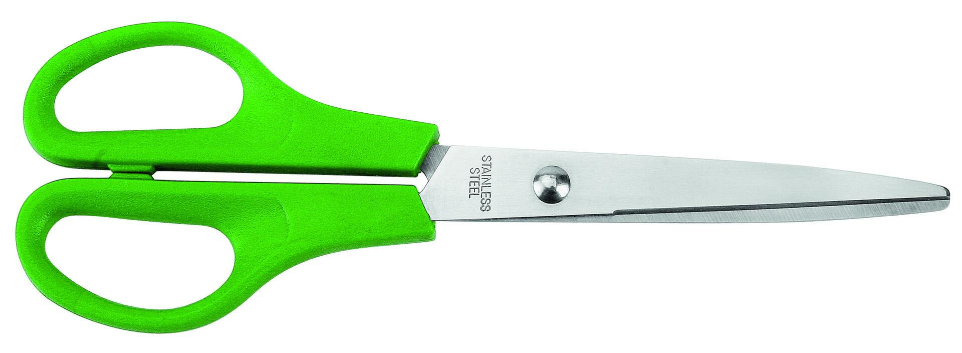1 st/fp. Skol- och hobbysax som fungerar till både höger- och vänsterhänta. Ergonomiskt handtag av PP. Avrundade bladspetsar av rostfritt stål. Längd: 13 cm.