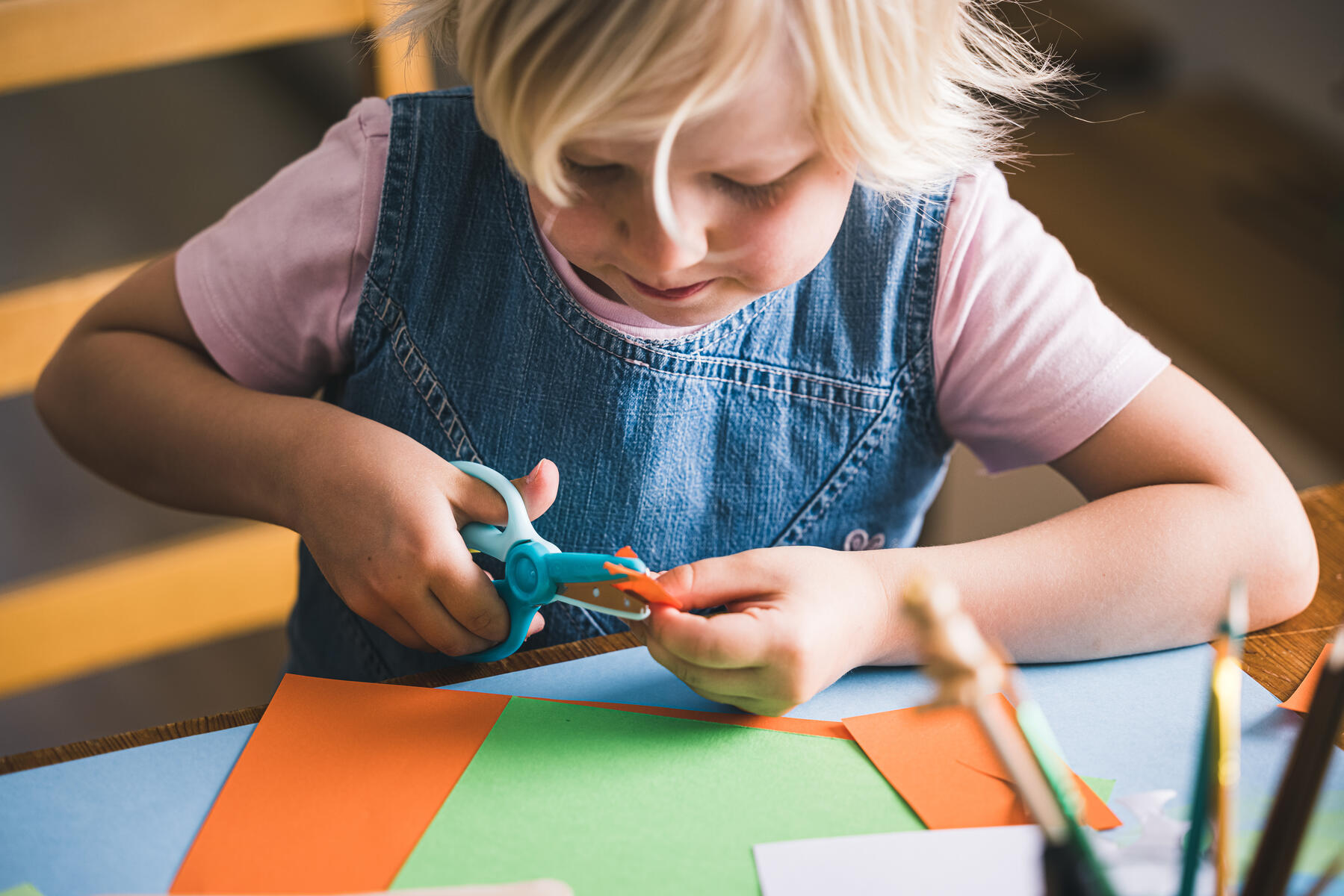 Sax som passar de minsta barnens händer. Säkra, plastbelagda blad och raka handtag utan öglor gör den enkel att greppa. En fjäder öppnar bladen efter varje klipp. Bladen öppnas också med minimal vinkel för att det ska gå lätt att använda saxen utan att tappa greppet. Passar både höger- och vänsterhänta. Längd 12 cm. För barn från 2 år.