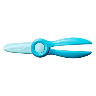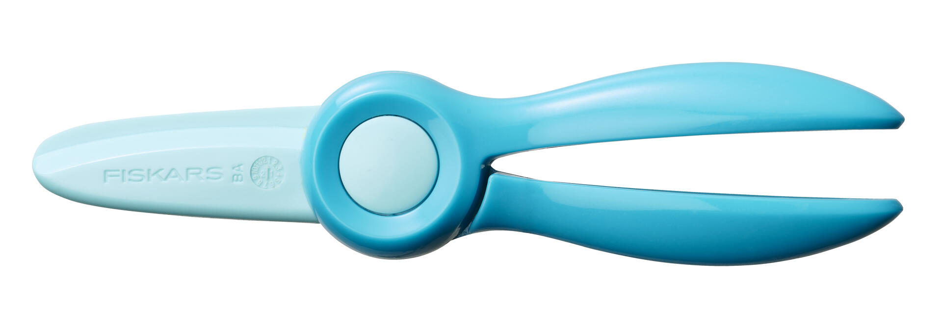 Sax som passar små händer. De säkra, plastbelagda bladen och en särskild träningsspak hjälper barnen att lära sig grunderna i klippning. När spaken är nedtryckt öppnas saxen automatiskt efter varje klipp. Spaken kan fällas upp så att saxen öppnas och stängs som en vanlig sax. De plastbelagda metallbladen skär enkelt genom papper och har trubbiga spetsar för extra säkerhet. Handtagets breda öglor har utformats för att passa yngre barn. Både höger- och vänsterhänta. Längd 17 cm. Passar från 3 år.