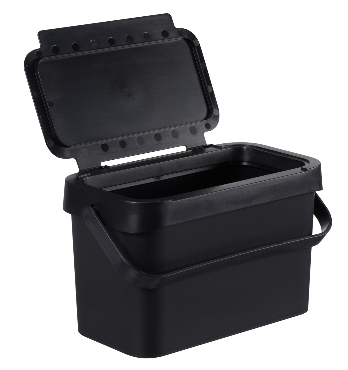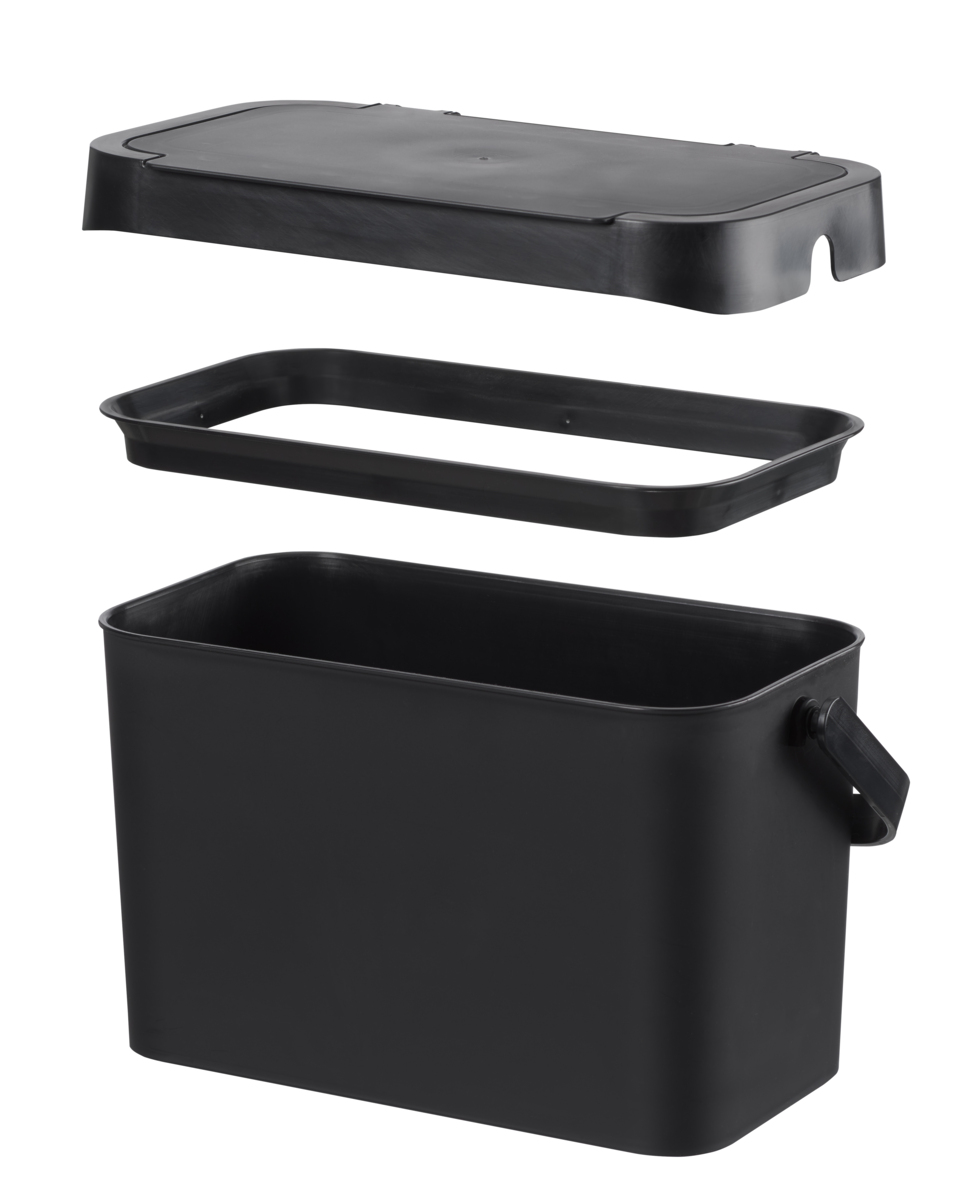 Praktisk och smidig hink med löstagbart lock. Påsen fästes enkelt med hållare som kan lyftas ur. Enkel att rengöra. Passar särskilt bra när man vill samla rester direkt vid matbordet. Av återvunnen polypropen. Mått: 29x17x17 cm.